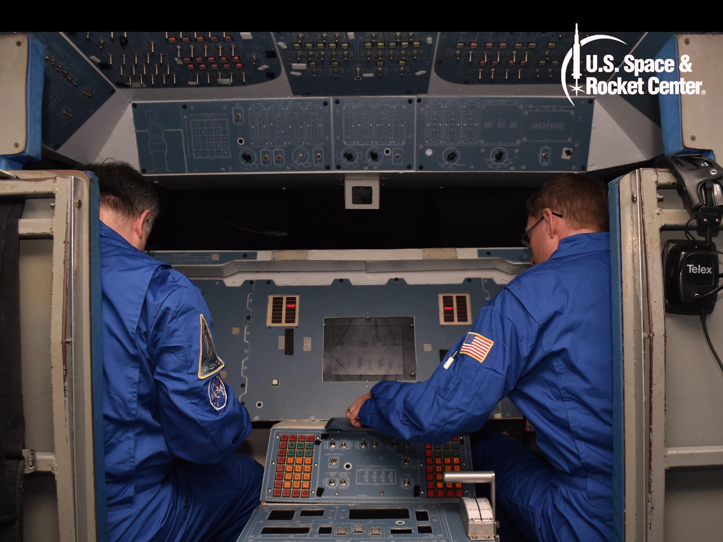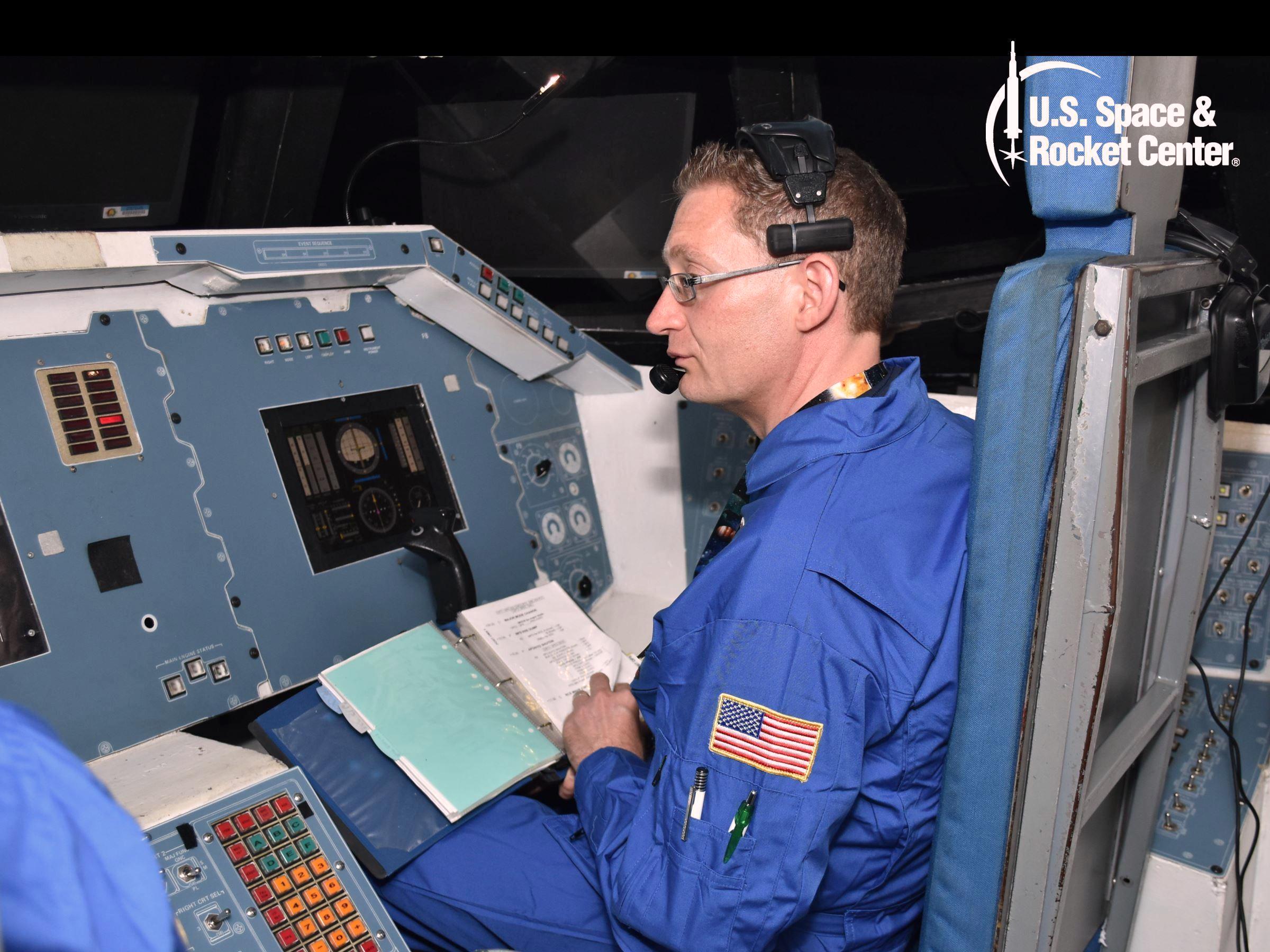 Darauf stehen beispielsweise Anweisungen, wie: ‚Panel R2: Set APU Fuel TK VLV (1/2/3) To Open‘. Auf den Bedien-Panels muss ich dann tatsächlich lange nach den richtigen Knöpfen suchen. Bestimmte Vorgänge, wie das Starten der Hilfstriebwerke (APU Auxiliary Power Unit), werden immer wieder trainiert. Die Zeit wird mittels Stoppuhr gemessen, denn die Prozeduren sollen innerhalb von fünf Minuten erledigt sein. Die Situation erscheint mir etwas stressig, doch die Shuttle Mission ist genau das, wofür ich hier bin. Während man mich mit der Bedienung der Schalter herausfordert wird der Commander auf Anflug und Landung des Shuttles trainiert. Schweißperlen stehen auf seiner Stirn. Mit jedem Versuch bekommt David mehr Steuerfreiheiten eingeräumt aber auch mehr externe Einflüsse, wie Seitenwind. Auch wenn die Shuttle-Flotte der Amerikaner längst in Rente ist, so ist es doch immer noch das Raumfahrzeug, mit dem ich groß geworden bin.